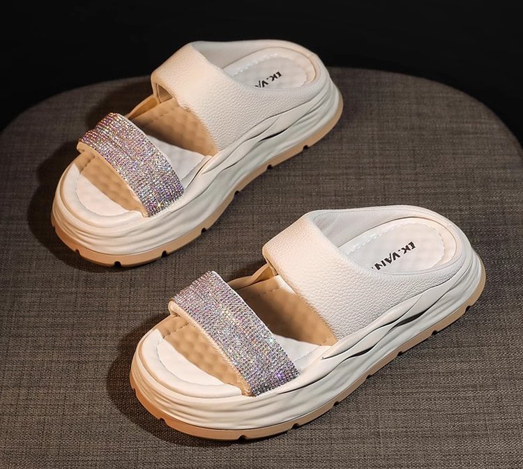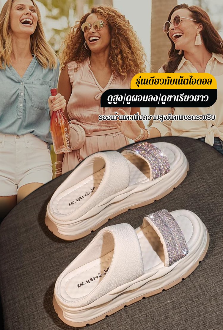 รองเท้าแตะเพิ่มความสูงติดเพชรกระพริบ